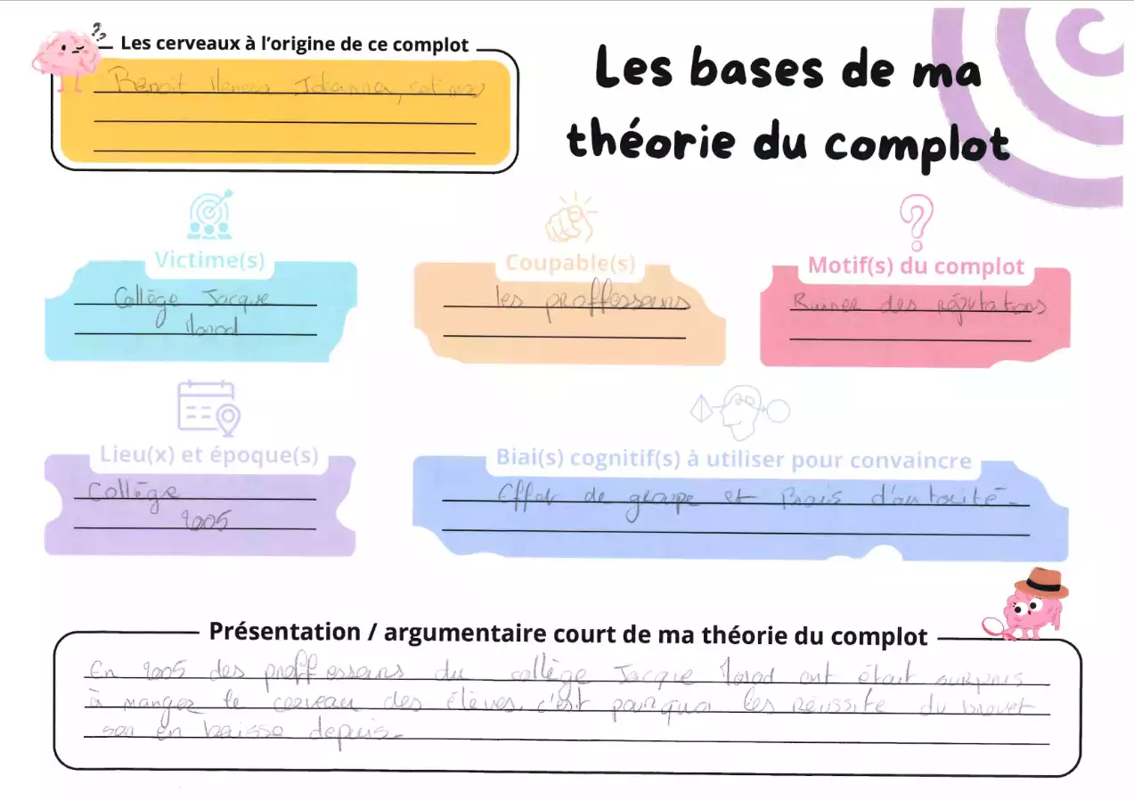 Illustration d'une activité sur l'utilisation de biais cognitifs pour concevoir les bases d'une théorie du complot