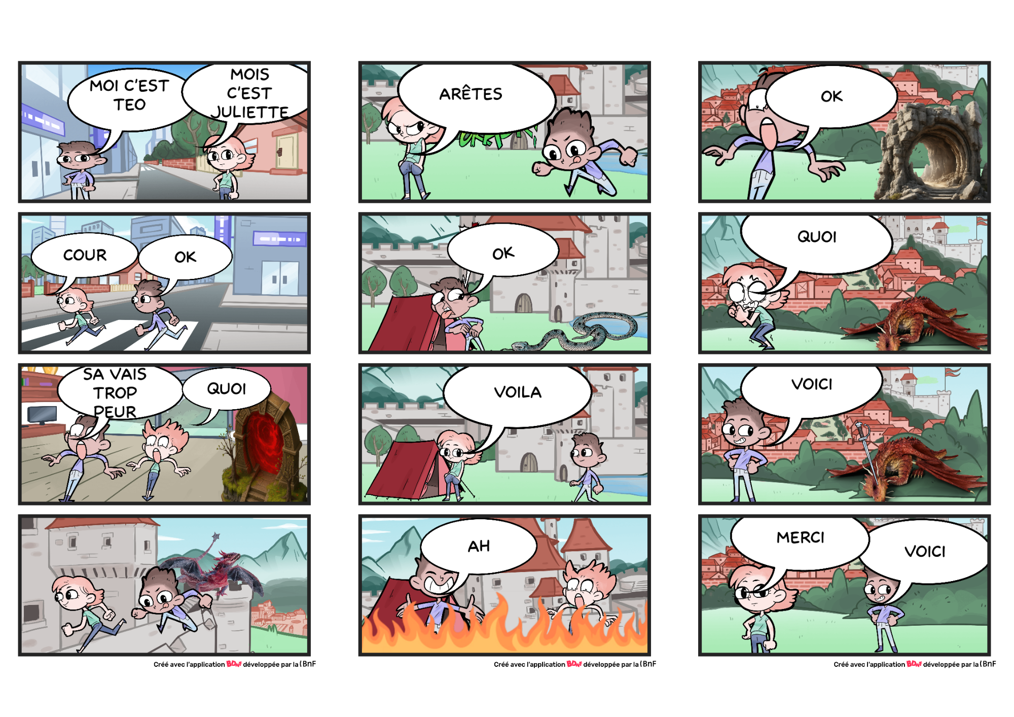 Pour y parvenir, les jeunes ont sélectionné les bulles afin d’y insérer les différents éléments de narration. Quelques retouches ont également été apportées sur les décors et les personnages pour correspondre au mieux à l’évolution de leurs bandes dessinées. Certains groupes ont également ajouté des idéogrammes et des onomatopées.